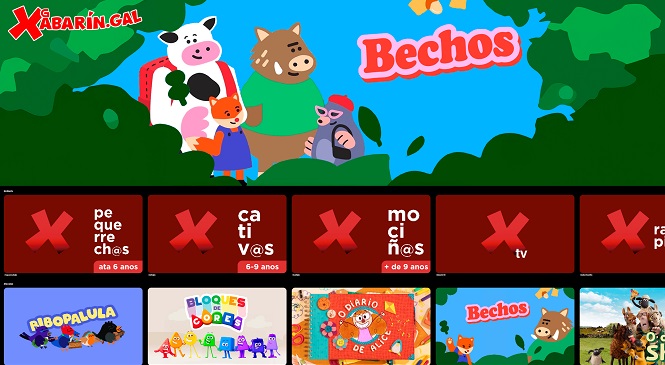 Xabarin.gal conta coa maior oferta de contidos en galego para a cativada da historia da televisión en Galicia. Os contidos de anime seguen a ser un dos sinais de identidade dos espazos infantís e xuvenís, e son tamén os contidos máis vistos neste primeiro ano de vida, entre eles ‘O detective Conan’, ‘Sakura’, ‘Shin Chan’ e ‘Gardiáns da noite’. O filme galego ‘Valentina’ e series galegas como ‘Os bolechas’ son tamén algún dos contidos máis visitados, destacando a irrupción de “Bibopalula”, que se converteu na serie máis vista de Xabarín.gal desde a súa estrea no mes de novembro.
